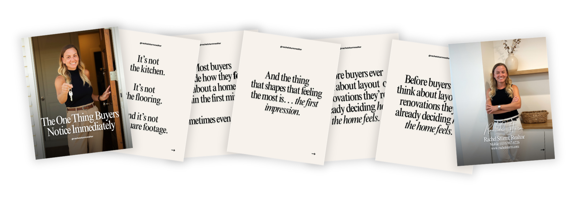Realtor Personal Brand Instead of relying on trends, we focused on creating carousel content that simplified the home buying and selling process, positioning her as a reliable and knowledgeable resource.